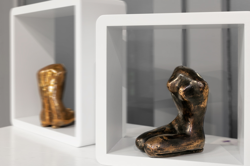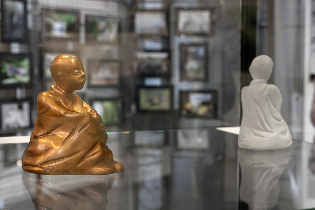 Le véritable défi résidait dans la gestion des jeux de lumière incontrôlés de la galerie, qui influençaient la colorimétrie et les ombres portées sur le bronze. Il était essentiel de maîtriser ces éléments, de les intégrer dans la composition et d’en faire un atout pour restituer fidèlement la richesse et la profondeur des teintes de chaque sculpture. Les lumières variables de la galerie nécessitaient des ajustements constants et une adaptation des réglages de l’appareil en fonction de l’éclairage pour chaque prise de vue, afin de préserver l’intégrité artistique des œuvres. Vous comprenez donc qu’il était crucial de photographier les sculptures de bronze dans les conditions d’éclairage de la galerie ! Un véritable challenge et exploit !